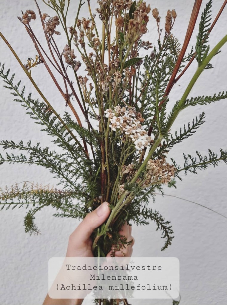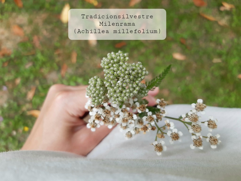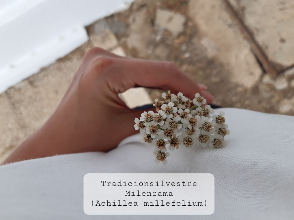La milenrama (Achillea millefolium) también llamada cientoenrama, milefolio, mil hojas, aquilea, hierba de Aquiles – millorri, millosto , debe su nombre científico Achillea millefolium precisamente a este último, al héroe griego Aquiles – según cuenta la leyenda, lo utilizaba para curar las heridas de sus soldados por ello también es conocida como “hierba de los soldados”.