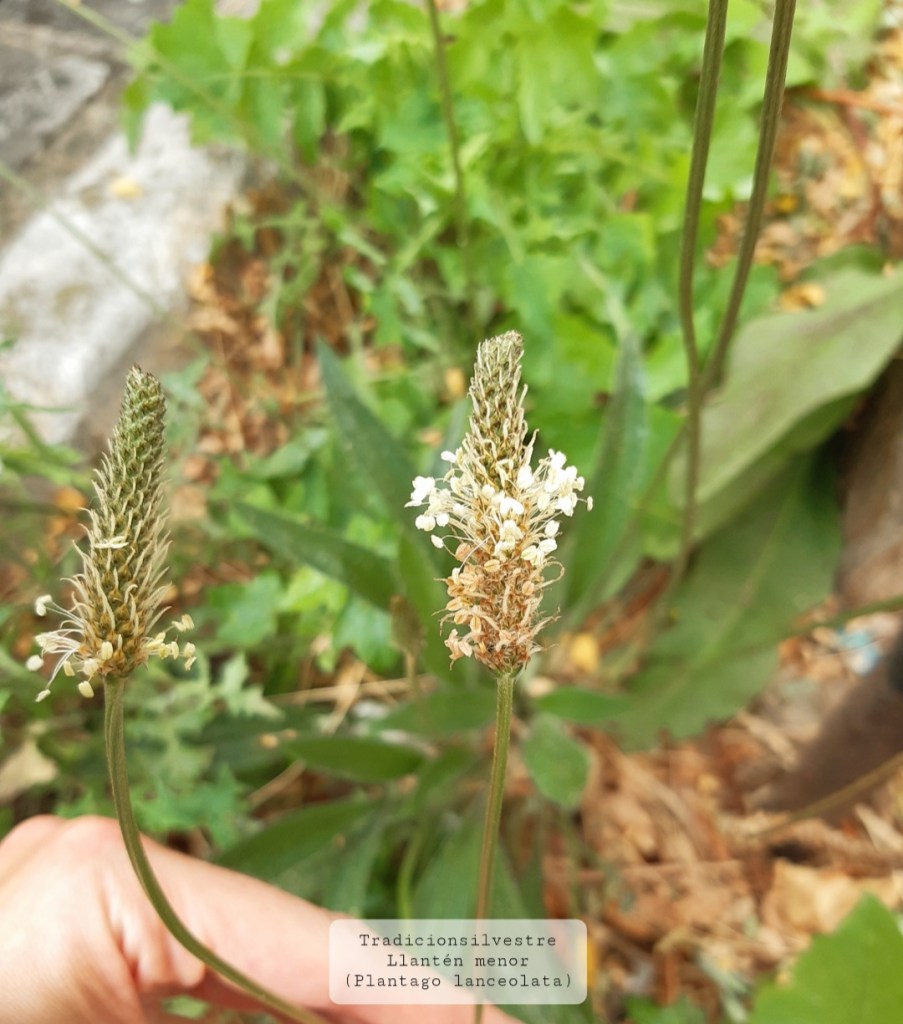 El llantén menor – Ezpata-plantaina (Plantago lanceolata) es una hierba perenne de tamaño muy variable (20 – 50 cm de altura) , los hay desde diminutos a enormes. Las hojas son lanceoladas y pueden alcanzar los 30 cm de largo y se atenúan en el peciolo. Se disponen formando una roseta basal. Las flores de color blanco- amarillento son diminutas y están unidas unas a otras formando una espiga al final de largos tallos florales.; florecen durante la primavera y el verano. Esta planta se deja ver con frecuencia en nuestras ciudades, en bordes de caminos, prados y terrenos sin cultivar.