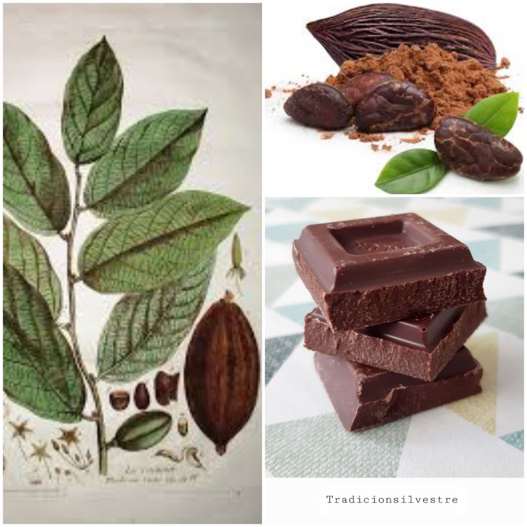 El árbol del cacao (Theobroma cacao) llega a alcanzar los 6 – 10 m de altura, posee grandes hojas perennes y flores amarillas o rojizas. El fruto es una baya grande (mazorca), ovoidea, de unos 25 cm de largo por 15 cm de ancho, de color pardo o rojizo cuando está maduro. La planta de Cacao se conoce por las culturas precolombinas de Centro América y se atribuye su origen a México extendiéndose a toda la cuenca del Amazonas, hoy en día su cultivo se ha extendido a regiones tropicales de África y Asia. El cacao fue el oro más preciado del imperio maya, se obtiene de las semillas que se hallan en las vainas del árbol de cacao.