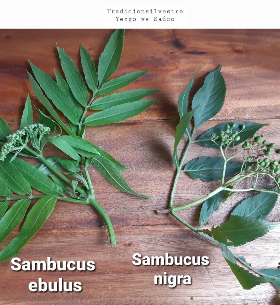 Mucho cuidado con confundir el saúco común (Sambucus nigra) con su primo el sauquillo, yezgo o saúco menor (Sambucus ebulus). El primero tiene numerosísimas propiedades medicinales, mientras que el segundo es bastante tóxico sobre todo sus frutos que pueden pruducir serios problemas cardiacos. La principal característica que diferencia el saúco del yezgo es el aspecto general de la planta. El saúco es un árbol o arbolito ramificado de unos 6 – 10 metros de altura. El yezgo, en cambio, es un arbusto que no suele superar los 2 metros de altura y que desprende un característico olor nauseabundo.
