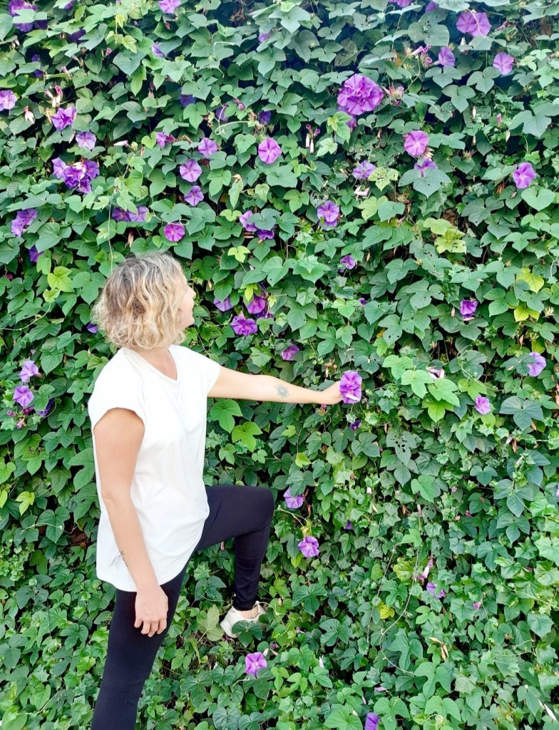 (Esta foto es de Ipomoea indica se diferencia de la purpurea en que presenta hojas trilobuladas en los tallos más viejos, mientras que en la purpúrea suelen ser ovadas. Las flores de la purpúrea son algo más pequeñas en tamaño. La ipomoea purpurea es una planta anual, mientras que la indica es prenne. En apariencia son muy parecidas, para reconocerla nos sirve para hacernos una idea y sobre todo reconocer el género de las ipomoeas)