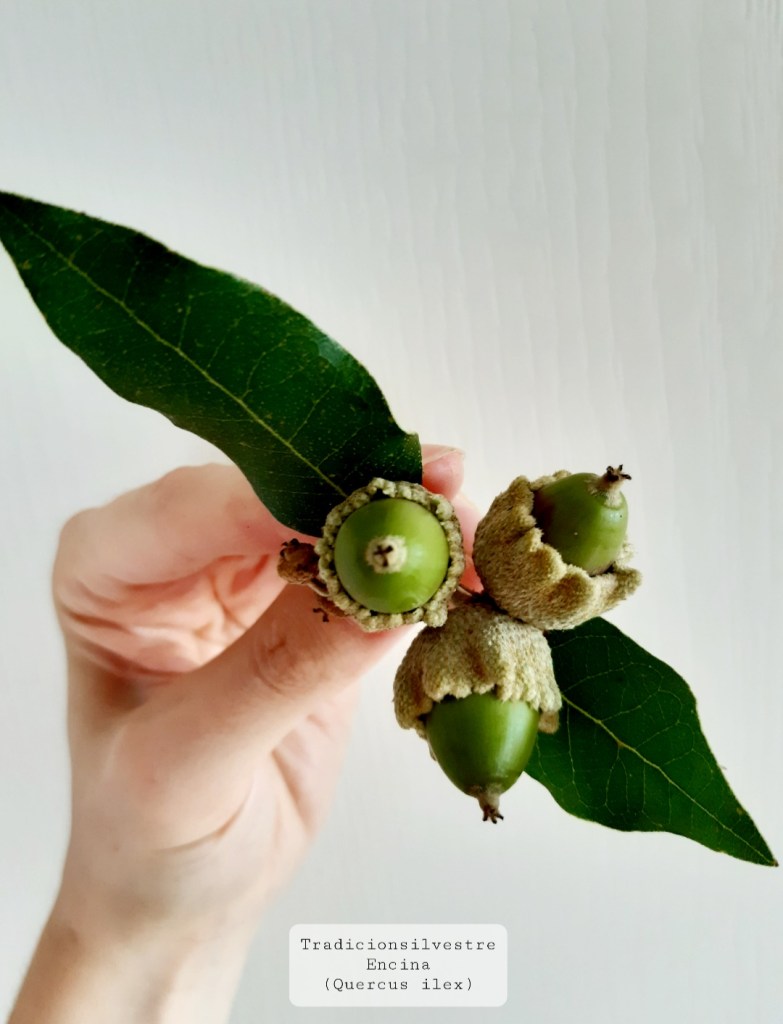 La encina – Ezkurrtze (Quercus ilex L.) es un árbol de 20 o 25 metros de altura, aunque a veces presenta porte arbustivo, de hoja perenne nativo de la región mediterránea. Tiene una copa ancha y extendida y una corteza gris oscura; primero lisa y luego agrietada con la edad. También se le conoce como chaparro/a o carrasca, y es uno de los pocos Quercus (por no decir el único) que tolera algo bien la sequía y las altas temperaturas veraniegas. La hojas son coriáceas, de color verde oscuro por el haz y algo más claras por el envés. Los frutos, las bellotas, son primero verdes y luego marrón oscuro cuando están maduras- maduran en otoño.