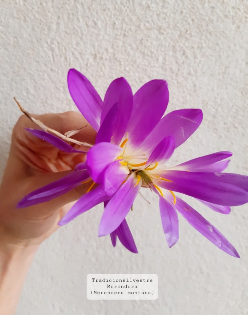 La Merendera montana Lange / Colchicum montanum – Askari lorea – Quitameriendas espantapastores – es una planta endémica de la península ibérica y suroeste de Francia, Su descriptivo nombre de «quitameriendas», se asocia a su tardía floración, a principios de otoño cuando las tardes se acortan hasta suprimir la merienda.