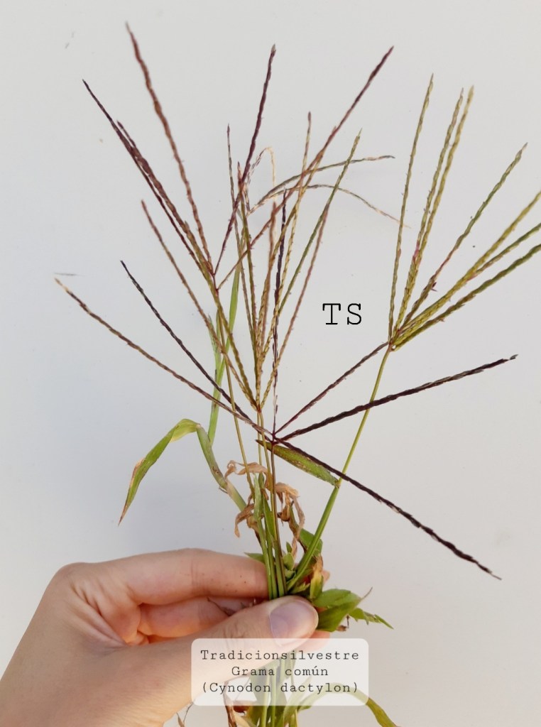 La grama (Cynodon dactylon) es una hierba de apenas 30 – 40 cm de altura, de tallos rastreros y rizomas profundos, que se extienden con rapidez bajo tierra y a los que debe su gran capacidad para rebrotar. El tallo crece a ras de tierra muy estirado y las ramas se elevan bastante erguidas. Las hojas son estrechas y tienen forma alargada lanceolada, acaban en punta y están recubiertas de un fino vello. Florece en verano y otoño formando espigas de flores violetas que se disponen en abanico como dedos extendidos. Es muy apreciada en jardinería por su rápido crecimiento y su resistencia, superior a la del césped por lo que es muy utilizada para crear tapices verdes en parques y jardines. También podemos verla en márgenes de caminos y sembrados, prados y pastos.