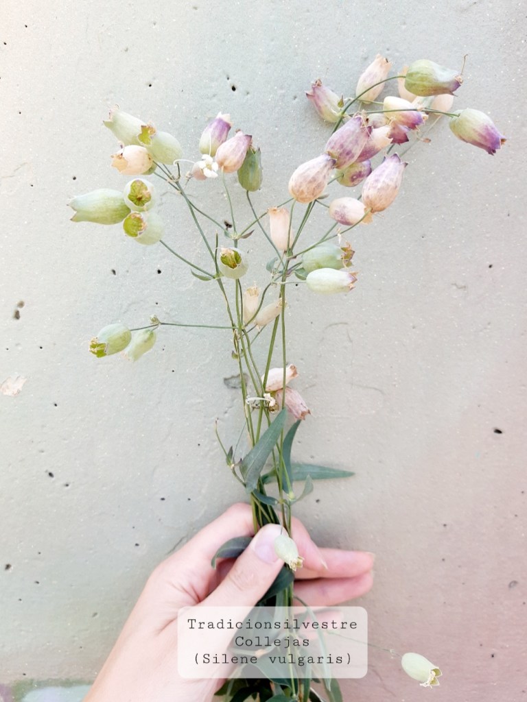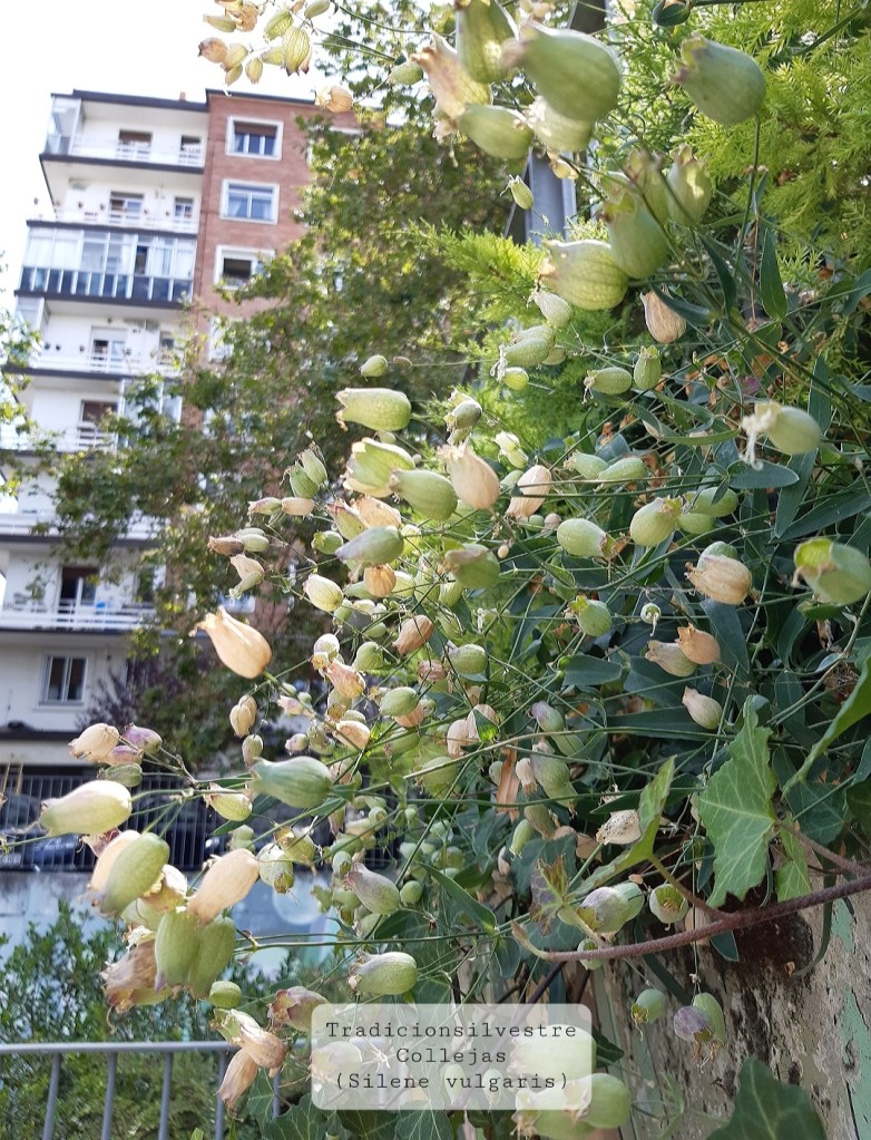La Silene vulgaris, de nombre común «colleja» es una planta herbácea con un denso sistema de tallos subterráneos o estolones que se expanden anualmente y de los que crecen en primavera una roseta de hojas basales lanceoladas de color verde azulado de las que después emergen tallos de hasta un metro de altura, las hojas del tallo son más triangulares y algo menores. Los tallos terminan en inflorescencias con flores de cinco pétalos de color rosa pálido. A partir de cada flor se forma un fruto en forma de cápsula o de vasija, que aloja numerosas semillas oscuras en su interior. La colleja es una hierba humilde que gusta de lugares frescos o sombríos. Crece en herbazales de los lindes y dentro de los campos, bordes de caminos o incluso en la tierra que recoge la humedad de debajo del asfalto.