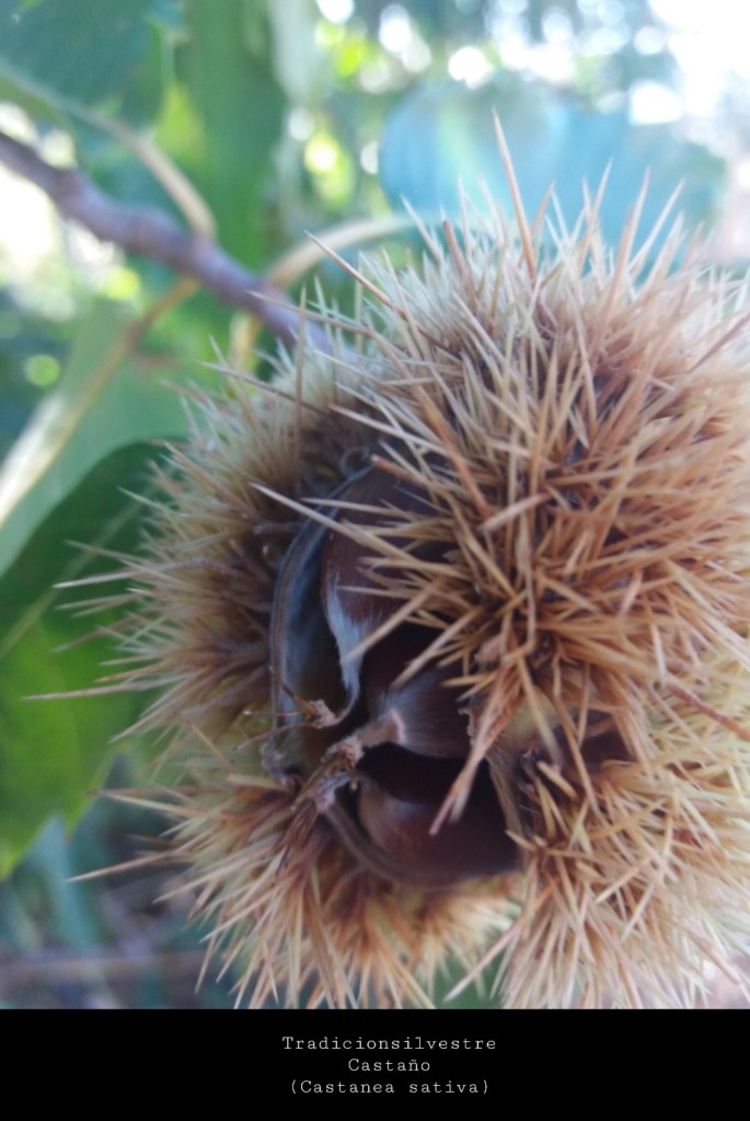 El castaño, gaztainondo (Castanea sativa) es un árbol que puede alcanzar los 30 metros de altura, el tronco se ensancha y se ahueca con la edad. Las hojas son alternas, lanceoladas, con el borde aserrado y un peciolo corto. Las flores masculinas aparecen en largos amentos primero verdes y luego amarillas, mientras que las flores femeninas están dispuestas en grupos de tres en la base de los amentos. Los frutos, las castañas, están envueltos por una cápsula muy espinosa llamada «erizo» dentro del que maduran y caen en octubre y noviembre. Se cree que es originario de Asia menor y que fue introducido en Europa por griegos y romanos, hoy en día se encuentra en todas las zonas templadas. El género, Castanea toma su nombre de una comarca de Grecia, famosa por sus castaños.
