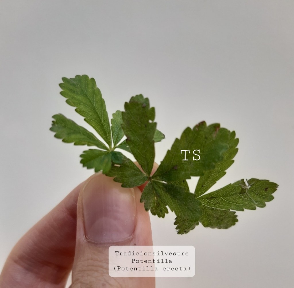La potentilla o tormentilla, también llamada sietenrama, zazpi-osto, zazporra (Potentilla erecta (L.) Raeusch.) es una planta vivaz de delicada apariencia que alcanza una altura de entre 10 y 40 centímetros. El rizoma es robusto de color marrón y de un grosor aproximado dedo pulgar y del que brotan tallos delgados y finos, bastante endebles en comparación con el rizoma del que parten. Las hojas tienen tres o cinco foliolos agudos, serrados especialmente en el ápex y algo pilosos y las flores son solitarias y de un color amarillo brillante, de cuatro pétalos que florecen de junio a agosto. Si se corta la raíz, su color inicial blanco amarillento se convierte rápidamente en un rojo intenso, por ello a veces se le conoce también con el nombre de «consuelda roja». La encontraremos en praderas húmedas, lugares turbosos, bordes de cursos de agua, sitios húmedos de brezales y de claros de bosque. Su nombre científico potentilla deriva del latín = potente, poderoso – se dice que alude a las poderosas propiedades tónicas y astringentes que posee.