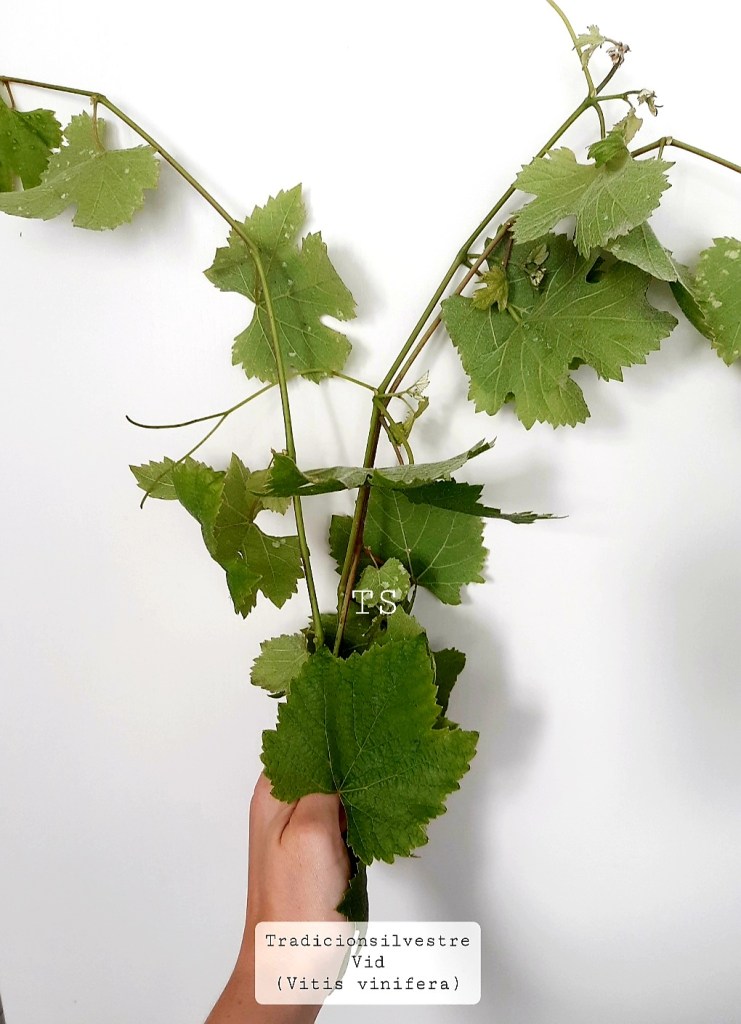 La vid (Vitis vinifera) es una planta leñosa y trepadora, que puede alcanzar hasta los 20 metros de alto, pero que cultivada no sobrepasa los dos metros. El tronco es grueso y retorcido, las hojas son palmeadas y las flores diminutas y de color verde pálido.