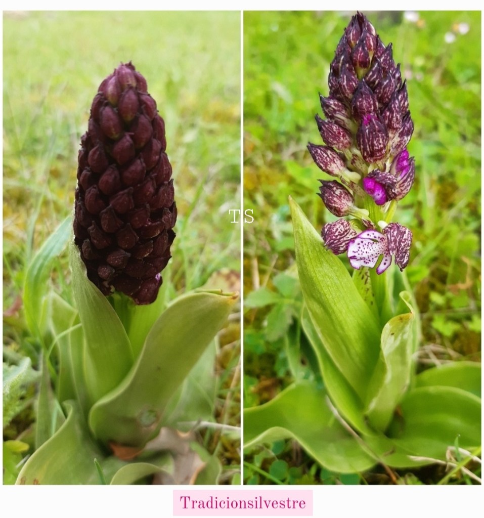 A pesar de su belleza curiosamemte su nombre científico o latino Orchis deriva del griego ὄρχις –órjis: «testículo» / ἰδέα: idéa «forma», es decir, «con forma de testículo» haciendo referencia a la forma testicular de los tubérculos de algunas de ellas como las del género Orchis que aqui os acerco la llamada orquídea púrpura u orquídea de dama Orchis purpurea.
