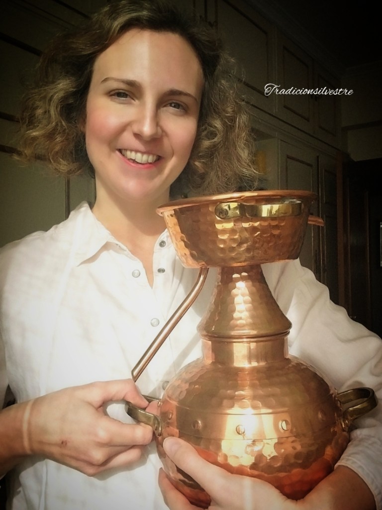 La alquitara es un instrumento de destilación tradicional no sé si más antiguo, pero sí algo más rudimentario que el alambique y que aún se utiliza en algunas zonas de nuestro país. La palabra alquitara procede del árabe «al-gattara», y vendría a significar «la que gotea».