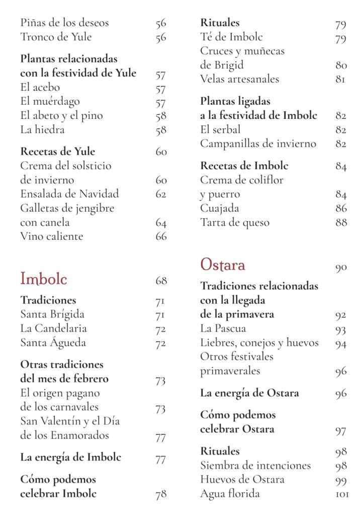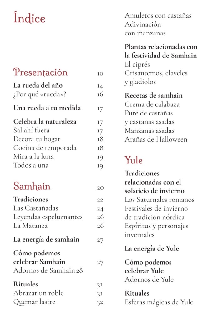 La Rueda del Año es un calendario lunisolar neopagano basado en ciclos agrarios ancestrales y en fenómenos astronómicos como los solsticios y los equinoccios. Las ocho festividades (o sabbats) que la componen se presentan y celebran en el libro con sencillos gestos y bonitas prácticas domésticas (altares naturales, rituales, recolección de plantas medicinales, elaboración de recetas de temporada) que contribuirán a armonizar y reforzar nuestro vínculo con la naturaleza, incluso si vivimos en el duro asfalto e independientemente de nuestras creencias.